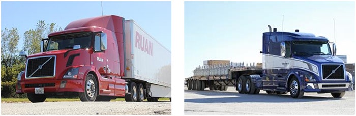 Ruan Transportation Management Systems of Des Moines, Iowa (left) and Searcy Trucking Limited of Winnipeg, Manitoba, Canada (right) were named 2015 Volvo Trucks Safety Award winners.