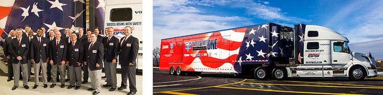 Volvo Trucks will continue to be the exclusive sponsor of the America’s Road Team safety outreach program for 2017. (left) The 2015-2016 America’s Road Team Captains pose with their Volvo VNL 780. (right) The Captains drive a Volvo VNL 780 model to haul the ATA’s Image Trailer, which includes interactive exhibits and displays used during presentations.