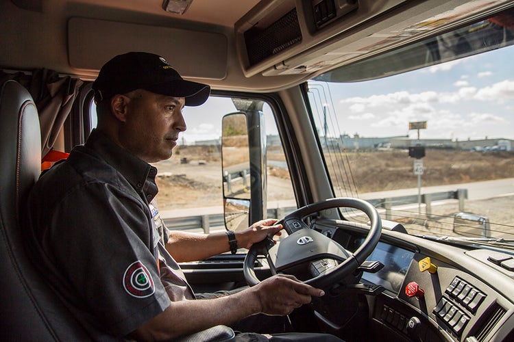 A twenty-year U.S. Army veteran, Antonio was wounded in combat in Afghanistan and lost his right leg below the knee. He received a special permit from the U.S. Department of Transportation that allows him to drive a Class 8 vehicle.