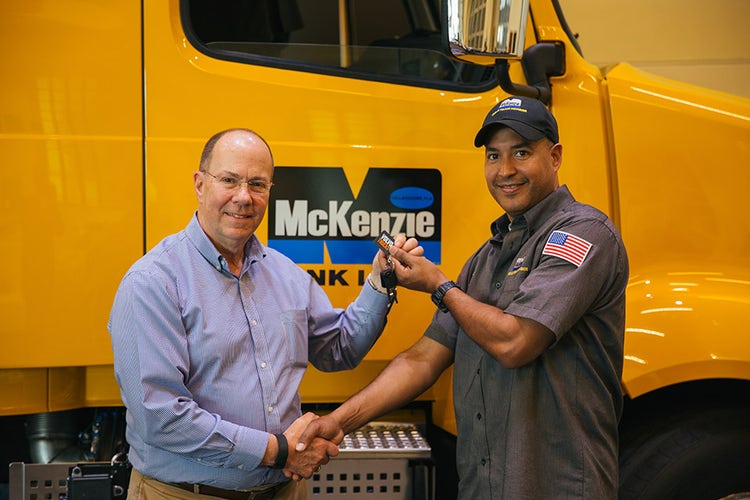 As part of the 2017 Driver of the Year award, McKenzie Tank Lines presented Antonio with a 2019 Volvo VNL 740 flat-roof sleeper model that will be his assigned truck.