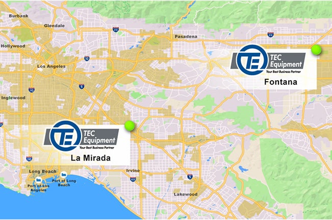 CAPTION: TEC Equipment’s two Southern California dealerships are well located to service fleet operators involved in local and regional goods movement, particularly around the ports — an ideal application for the Volvo VNR Electric Class 8 model.