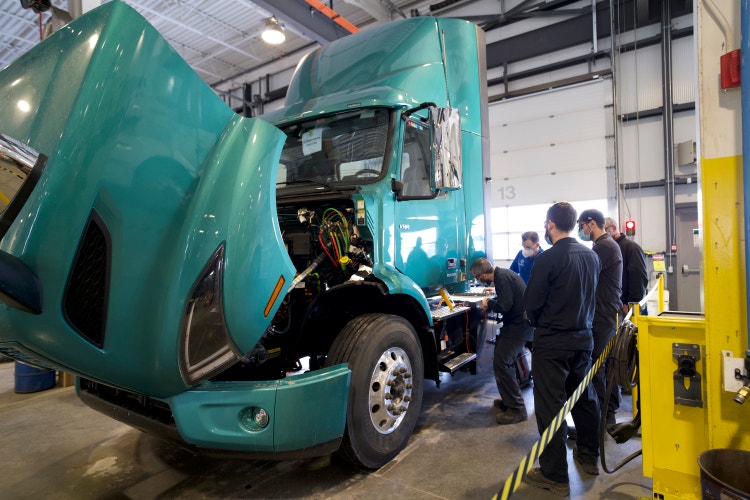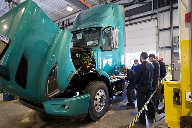 CAPTION: Paré Centre du Camion has already trained and certified three technicians to perform maintenance and repairs on customers’ Volvo VNR Electric trucks.