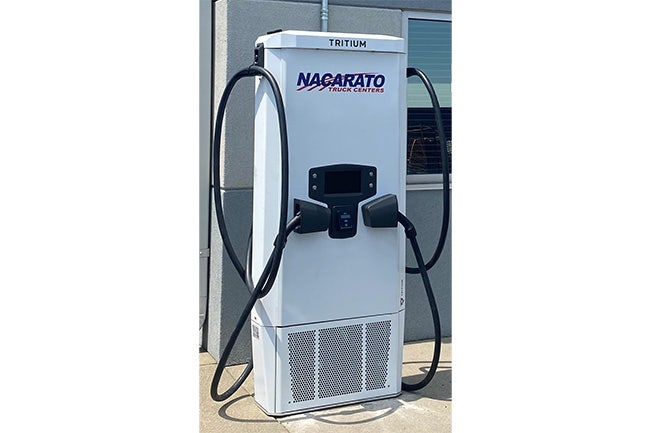 CAPTION: Nacarato Truck Centers has made investments in its facilities and necessary vehicle diagnostics tools to assist customers with their electromobility journey including installing a 75-kW charging station to support the battery-electric trucks.