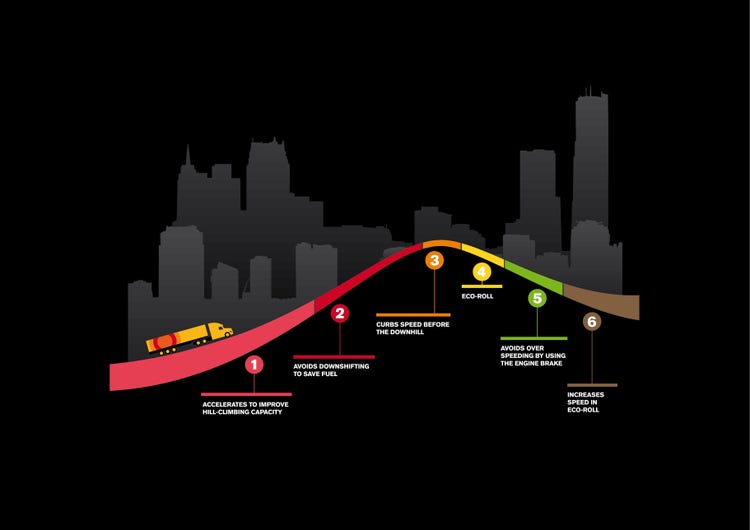 CAPTION: I-Shift together with the new version of the I-See technology, which employs real-time map-based data and GPS positioning, manages speed and gear-shifting in the most fuel-efficient way on any route or terrain and generates up to an additional 1% in fuel savings.
