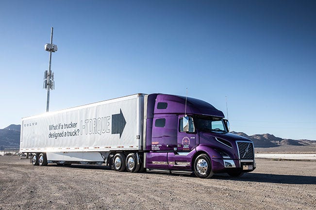 The Volvo I-Torque technology combines a high-efficiency powertrain — including the D13TC (Turbo Compound) engine with a 13-speed automated manual transmission and rear axle ratios as low as 2.15 — with Volvo Truck’s I-See terrain-aware, predictive cruise control technology. By leveraging the I-See technology, the Volvo I-Torque technology pre-selects the optimal combination of engine RPM and gear selection needed based on the topography of the road ahead, enabling the driver to manage speed and gear-shifting in the most fuel-efficient way. The D13TC engine has been used for over 4.3 billion miles of freight transport in North America since 2017.