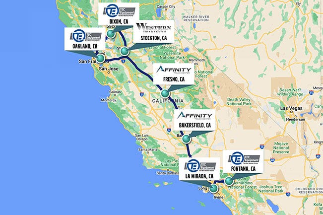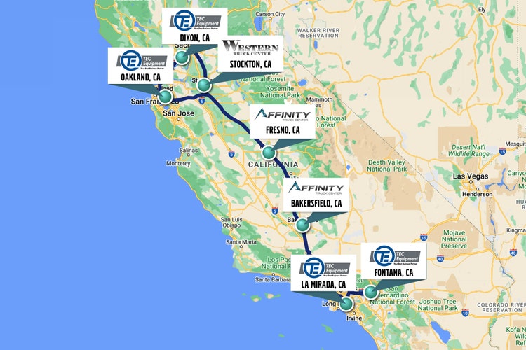 CAPTION: Volvo Trucks announced a California Electrified Charging Corridor Project for medium- and heavy-duty electric vehicles with locations at several Volvo Trucks’ dealership locations in Central and Northern California, including TEC Equipment Oakland, TEC Equipment Dixon, Western Truck Center in Stockton, and Affinity Truck Centers in Fresno and Bakersfield serving as an extension to chargers already available at the TEC Fontana and TEC La Mirada locations in Southern California.