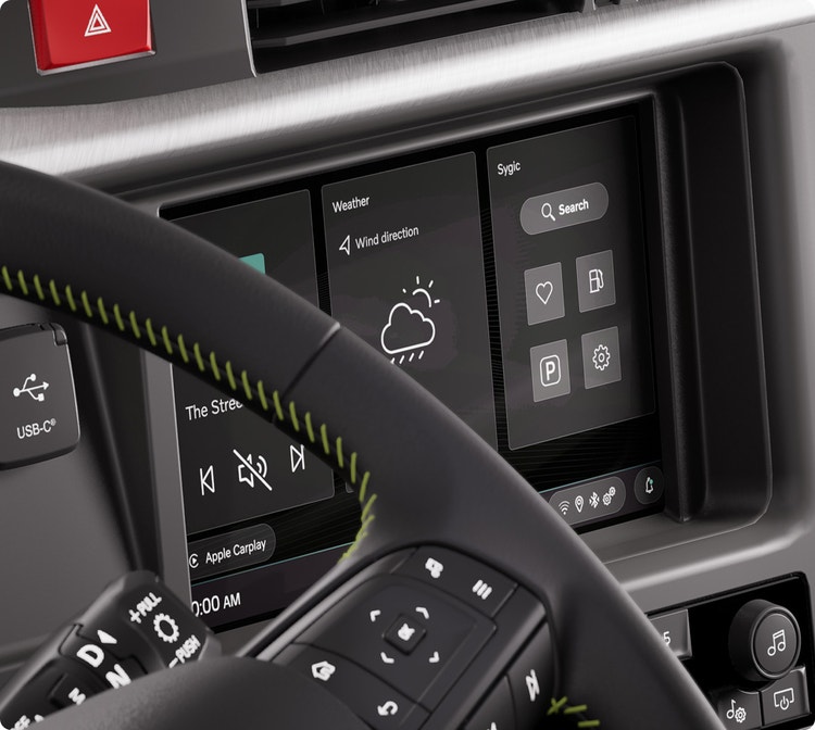 Le système d’infodivertissement en option du VNR comprend un écran tactile couleur de 9 pouces, un son haut de gamme et de nombreuses options pour les outils de navigation et les applications tierces.